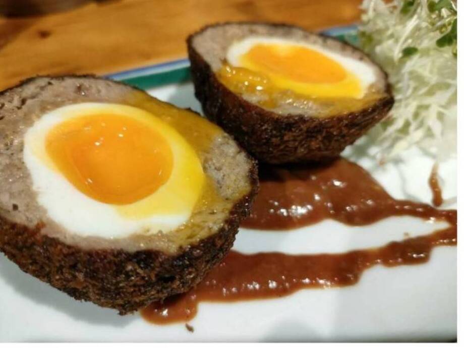 イベリコ豚ミンチ肉と 半熟卵のスコッチエッグ スパイシーカレーソース