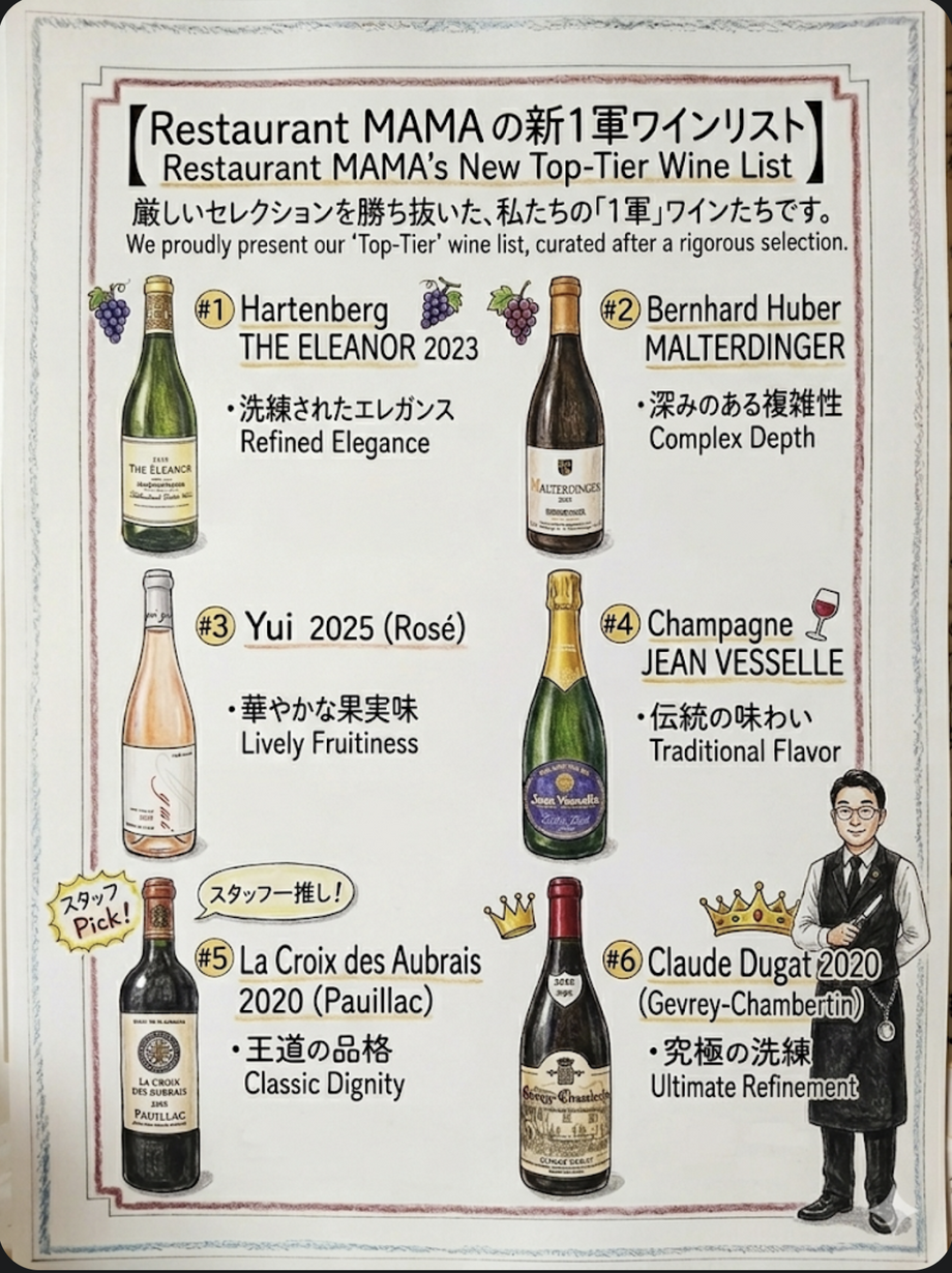 【Restaurant MAMA の新1軍ワインリスト】