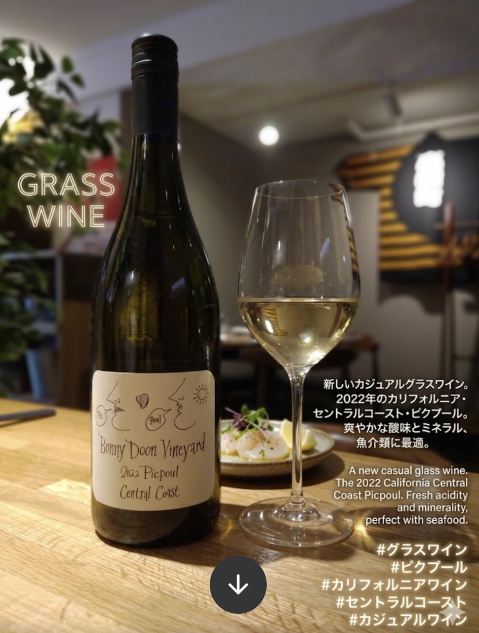 #ボニードゥーンヴィンヤード #ピクプール #カリフォルニアワイン #セントラルコースト #グラスワイン #カジュアルワイン #ワイン好きと繋がりたい #BonnyDoonVineyard #Picpoul #CaliforniaWine #CentralCoast #GlassWine #CasualWine #WineLover